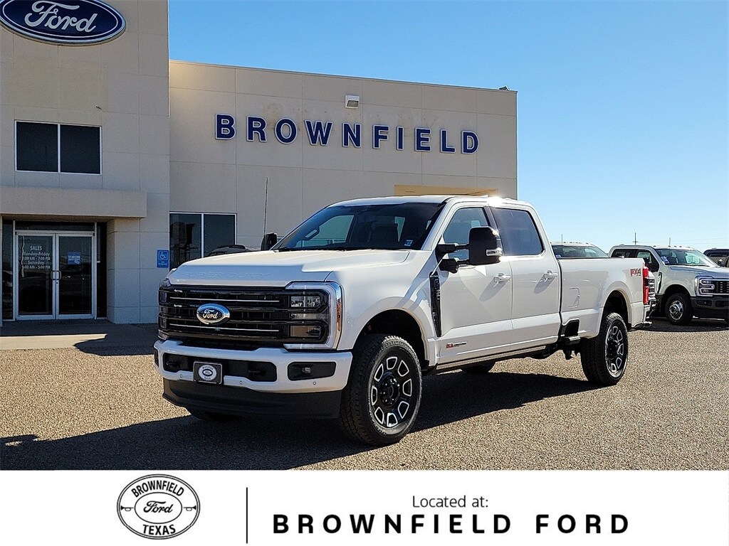 This 2026 Ford F-350SD Platinum in Star White Metallic Tri-Coat comes with the following features: 6.7L High Output Power Stroke V8 Diesel 10-Speed Automatic 4WD 4WD, ABS brakes, Alloy wheels, Compass, Electronic Stability Control, Front dual zone A/C, Heated door mirrors, Heated front seats, Heated rear seats, Illuminated entry, Low tire pressure warning, Remote keyless entry, and Traction control Ford Connectivity Package (1-Year Included), Internet access capable: 5G Modem - Ford Connectivity Package, 4WD, ABS brakes, Alloy wheels, Compass, Electronic Stability Control, Front dual zone A/C, Heated door mirrors, Heated front seats, Heated rear seats, Illuminated entry, Low tire pressure warning, Remote keyless entry, Traction control, 4-Wheel Disc Brakes, Adjustable pedals, Air Conditioning, AM/FM radio: SiriusXM with 360L, Auto High-beam Headlights, Auto-dimming Rear-View mirror, Automatic temperature control, Brake assist, Delay-off headlights, Driver door bin, Driver vanity mirror, Dual front impact airbags, Dual front side impact airbags, Emergency communication system: SYNC 4 911 Assist, Flow-Through Console, Front anti-roll bar, Front Bucket Seats, Front Center Armrest, Front fog lights, Front reading lights, Fully automatic headlights, Garage door transmitter, Heated steering wheel, Memory seat, Navigation system: Connected Navigation, Outside temperature display, Overhead airbag, Overhead console, Panic alarm, Passenger door bin, Passenger vanity mirror, Pedal memory, Power door mirrors, Power driver seat, Power passenger seat, Power steering, Power windows, Rain sensing wipers, Rear reading lights, Rear seat center armrest, Rear step bumper, Rear window defroster, Security system, SiriusXM with 360L, Speed control, Split folding rear seat, Steering wheel mounted audio controls, SYNC 4 with Enhanced Voice Recognition, Tachometer, Telescoping steering wheel, Tilt steering wheel, Trip computer, Turn signal indicator mirrors, Variably intermittent wipers, and Ventilated front seats.