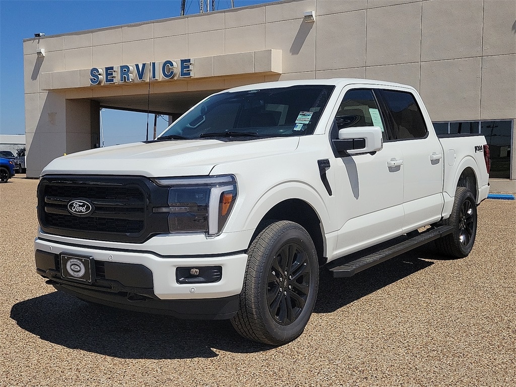 This 2025 Ford F-150 Lariat in Star White Metallic Tri-Coat comes with the following features: 5.0L V8 10-Speed Automatic 4WD 4WD Equipment Group 502A High, FX4 Off-Road Package (4x4 FX4 Off-Road Bodyside Decal, Electronic Locking w/3.31 Axle Ratio, Hill Descent Control, Monotube Rear Shocks, Off-Road Tuned Front Shock Absorbers, Rock Crawl Mode, and Tray Style Floor Liner w/o Carpet Mats), 4WD, 3.31 Axle Ratio, 4-Wheel Disc Brakes, 8 Speakers, ABS brakes, ActiveX Trimmed Bucket Seats, Adjustable pedals, Air Conditioning, Alloy wheels, AM/FM radio: SiriusXM with 360L, Auto High-beam Headlights, Auto-dimming door mirrors, Auto-dimming Rear-View mirror, Automatic temperature control, Brake assist, Bumpers: chrome, Chrome wheels, Compass, Delay-off headlights, Driver door bin, Driver vanity mirror, Dual front impact airbags, Dual front side impact airbags, Electronic Stability Control, Emergency communication system: SYNC 4 911 Assist, Front anti-roll bar, Front Bucket Seats, Front Center Armrest, Front dual zone A/C, Front fog lights, Front License Plate Bracket, Front reading lights, Front wheel independent suspension, Fully automatic headlights, Garage door transmitter, Heated door mirrors, Heated front seats, Heated steering wheel, Illuminated entry, Low tire pressure warning, Memory seat, Navigation system: Connected Navigation, Occupant sensing airbag, Outside temperature display, Overhead airbag, Overhead console, Panic alarm, Passenger door bin, Passenger vanity mirror, Pedal memory, Power door mirrors, Power driver seat, Power passenger seat, Power steering, Power windows, Radio data system, Radio: B&O Sound System by Bang & Olufsen, Rain sensing wipers, Rear reading lights, Rear seat center armrest, Rear step bumper, Rear window defroster, Remote keyless entry, Security system, Speed control, Split folding rear seat, Steering wheel mounted audio controls, SYNC 4 w/Enhanced Voice Recognition, Tachometer, Telescoping steering wheel, Tilt steering wheel, Traction control, Trip computer, Turn signal indicator mirrors, Twin Panel Moonroof, Variably intermittent wipers, Ventilated front seats, Voltmeter, and Wheels: 18" Chrome-Like PVD. Price includes: $500 - Retail Bonus Cash. Exp. 01/05/2026