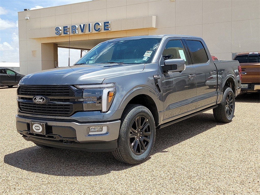 This 2025 Ford F-150 Platinum in Carbonized Gray Metallic comes with the following features: 3.5L V6 EcoBoost 10-Speed Automatic 4WD 4WD Equipment Group 702A High, 4WD, 4-Wheel Disc Brakes, 8 Speakers, ABS brakes, Adjustable pedals, Air Conditioning, Alloy wheels, AM/FM radio: SiriusXM with 360L, Auto High-beam Headlights, Auto tilt-away steering wheel, Auto-dimming door mirrors, Auto-dimming Rear-View mirror, Automatic temperature control, Brake assist, Bumpers: body-color, Compass, Delay-off headlights, Driver door bin, Driver vanity mirror, Dual front impact airbags, Dual front side impact airbags, Electronic Locking w/3.55 Axle Ratio, Electronic Stability Control, Emergency communication system: SYNC 4 911 Assist, Front anti-roll bar, Front Bucket Seats, Front Center Armrest, Front dual zone A/C, Front fog lights, Front License Plate Bracket, Front reading lights, Front wheel independent suspension, Fully automatic headlights, Garage door transmitter, Heated door mirrors, Heated front seats, Heated rear seats, Heated steering wheel, Illuminated entry, Leather steering wheel, Low tire pressure warning, Memory seat, Navigation system: Connected Navigation, Occupant sensing airbag, Outside temperature display, Overhead airbag, Overhead console, Panic alarm, Passenger door bin, Passenger vanity mirror, Pedal memory, Power door mirrors, Power driver seat, Power passenger seat, Power steering, Power windows, Radio data system, Radio: B&O Sound System by Bang & Olufsen, Rain sensing wipers, Rear reading lights, Rear seat center armrest, Rear step bumper, Rear window defroster, Remote keyless entry, Security system, Speed control, Split folding rear seat, Steering wheel memory, Steering wheel mounted audio controls, SYNC 4 w/Enhanced Voice Recognition, Tachometer, Telescoping steering wheel, Tilt steering wheel, Traction control, Trip computer, Turn signal indicator mirrors, Unique Multi-Contour Leather Bucket Seats, Variably intermittent wipers, Ventilated front seats, Voltmeter, and Wheels: 20" Painted Gloss Ebony Black.