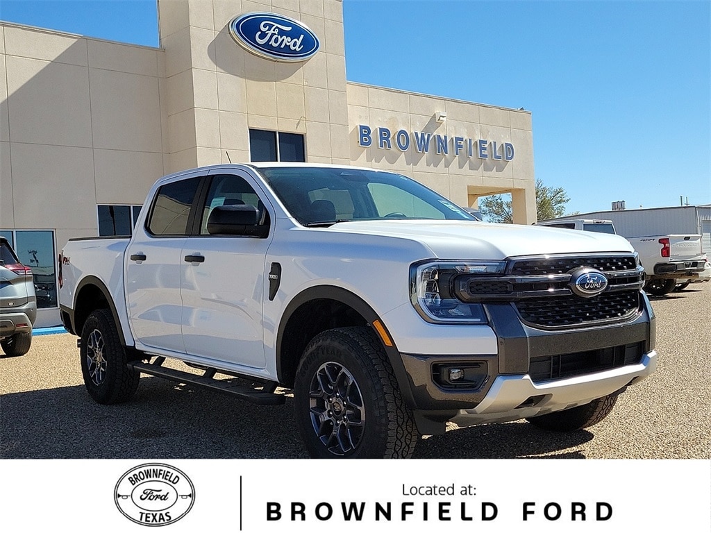 This 2025 Ford Ranger XLT in Oxford White comes with the following features: EcoBoost 2.3L I4 GTDi DOHC Turbocharged VCT 10-Speed Automatic 4WD 4WD Equipment Group 300A Standard, FX4 Off-Road Package (FX4 Off-Road Box Decal, FX4 Selectable Drive Modes, Off-Road Screen in Center Stack, Off-Road Tuned Shocks, and Trail Control), Sport Appearance Package (Gray Painted Center Bar & Grille Surround, Gray Painted Front Fascia & Rear Bumper, and Sport Box Decal), 4WD, 4-Wheel Disc Brakes, 6 Speakers, ABS brakes, Air Conditioning, Alloy wheels, AM/FM radio: SiriusXM, AM/FM Stereo, Auto High-beam Headlights, Auto-dimming Rear-View mirror, Black Running Boards, Brake assist, Cloth Front Bucket Seats, Compass, Delay-off headlights, Driver door bin, Driver vanity mirror, Dual front impact airbags, Dual front side impact airbags, Electronic Stability Control, Emergency communication system: SYNC 4 911 Assist, Front anti-roll bar, Front Bucket Seats, Front Center Armrest, Front fog lights, Front License Plate Bracket, Front reading lights, Front wheel independent suspension, Fully automatic headlights, Illuminated entry, Integrated Box Side Step, Internet access capable: FordPass Connect 4G, Leather Shift Knob, Low tire pressure warning, Navigation system: Connected Navigation, Occupant sensing airbag, Outside temperature display, Overhead airbag, Overhead console, Panic alarm, Passenger door bin, Passenger vanity mirror, Power door mirrors, Power steering, Power windows, Rear reading lights, Rear seat center armrest, Rear step bumper, Rear window defroster, Remote keyless entry, Security system, SiriusXM Satellite Radio, Speed control, Speed-sensing steering, Steering wheel mounted audio controls, SYNC 4A w/Connected Navigation, Telescoping steering wheel, Tilt steering wheel, Traction control, Trip computer, Variably intermittent wipers, Voltmeter, and Wheels: 17" Gray-Painted Aluminum.