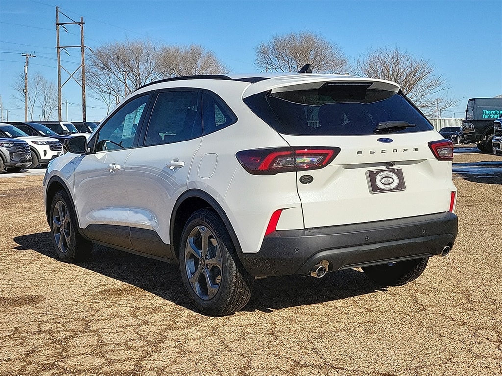 Price includes: $1000 - SUV Spike Retail Bonus Cash. Exp. 02/16/2026 $2000 - Bonus Customer Cash. Exp. 03/31/2026 $500 - Retail Customer Cash. Exp. 03/31/2026 This 2026 Ford Escape ST-Line in Star White Metallic Tri-Coat comes with the following features: 1.5L EcoBoost 8-Speed Automatic FWD Equipment Group 300A (3.81 Axle Ratio, 4-Way Manual Front Passenger Seat, 8-Way Power Driver Seat, Ford App, Partial Vinyl/Cloth Front Sport Contour Bucket Seats with Red Stitching, Radio: AM/FM Stereo with SiriusXM 360L, SYNC 4, and Wheels: 18" Rock Metallic Painted Aluminum), Tech Pack #1 (Adaptive Cruise Control with Stop-and-Go, Connected Navigation (1-Year Included), Digital Rear View Camera, Evasive Steering Assist, Ford Co-Pilot360 Assist+, Intersection Assist, Predictive Speed Assist, Rear Parking Sensor, and SYNC 4 with Enhanced Voice Recognition), 4-Wheel Disc Brakes, 6 Speakers, ABS brakes, Air Conditioning, Alloy wheels, AM/FM radio: SiriusXM 360L, Auto High-beam Headlights, Automatic temperature control, Brake assist, Bumpers: body-color, Compass, Delay-off headlights, Driver door bin, Driver vanity mirror, Dual front impact airbags, Dual front side impact airbags, Electronic Stability Control, Emergency communication system: SYNC 4 911 Assist, Four wheel independent suspension, Front anti-roll bar, Front Bucket Seats, Front Center Armrest, Front dual zone A/C, Front License Plate Bracket, Front reading lights, Fully automatic headlights, Heated steering wheel, Illuminated entry, Knee airbag, Low tire pressure warning, Occupant sensing airbag, Outside temperature display, Overhead airbag, Overhead console, Panic alarm, Passenger door bin, Passenger vanity mirror, Power door mirrors, Power driver seat, Power Liftgate, Power steering, Power windows, Radio data system, Rear anti-roll bar, Rear reading lights, Rear seat center armrest, Rear window defroster, Rear window wiper, Remote keyless entry, Speed control, Speed-sensing steering, Speed-Sensitive Wipers, Split folding rear seat, Spoiler, Sport steering wheel, Steering wheel mounted audio controls, Tachometer, Telescoping steering wheel, Tilt steering wheel, Traction control, Trip computer, and Variably intermittent wipers.