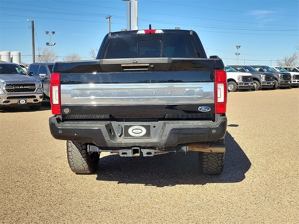 This 2022 Ford F-250SD Platinum Power Stroke 6.7L V8 DI 32V OHV Turbodiesel 10-Speed Automatic 4WD in Agate Black Metallic comes with the following features: 4WD FX4 Off-Road Package (Hill Descent Control, Off-Road Specifically Tuned Shock Absorbers, and Unique FX4 Off-Road Box Decal), GVWR: 10,000 lb Payload Package, 4WD, 10 Speakers, 4-Wheel Disc Brakes, ABS brakes, Adjustable pedals, Advanced Security Pack Inclination Sensor Removal, Air Conditioning, Alloy wheels, AM/FM radio: SiriusXM with 360L, Auto High-beam Headlights, Auto-dimming Rear-View mirror, Automatic temperature control, Brake assist, Compass, Delay-off headlights, Driver door bin, Driver vanity mirror, Dual front impact airbags, Dual front side impact airbags, Electronic Stability Control, Emergency communication system: SYNC 4 911 Assist, Exterior Parking Camera Rear, Flow-Through Console, Front anti-roll bar, Front Bucket Seats, Front Center Armrest, Front dual zone A/C, Front fog lights, Front reading lights, Fully automatic headlights, Heated door mirrors, Illuminated entry, Leather steering wheel, Low tire pressure warning, Navigation system: Connected Navigation, Outside temperature display, Overhead airbag, Overhead console, Panic alarm, Passenger door bin, Passenger vanity mirror, Power door mirrors, Power driver seat, Power passenger seat, Power steering, Power windows, Radio data system, Radio: B&O Sound System by Bang & Olufsen, Rear Parking Sensors, Rear reading lights, Rear seat center armrest, Rear step bumper, Rear window defroster, Remote keyless entry, Security system, SiriusXM Radio w/360L, Speed control, Split folding rear seat, Steering wheel mounted audio controls, SYNC 4 w/Enhanced Voice Recognition, Tachometer, Telescoping steering wheel, Tilt steering wheel, Traction control, Trip computer, Turn signal indicator mirrors, Twin Panel Power Moonroof, Ultimate Trailer Tow Camera System, Upfitter Switches (6), and Variably intermittent wipers.